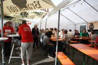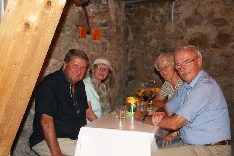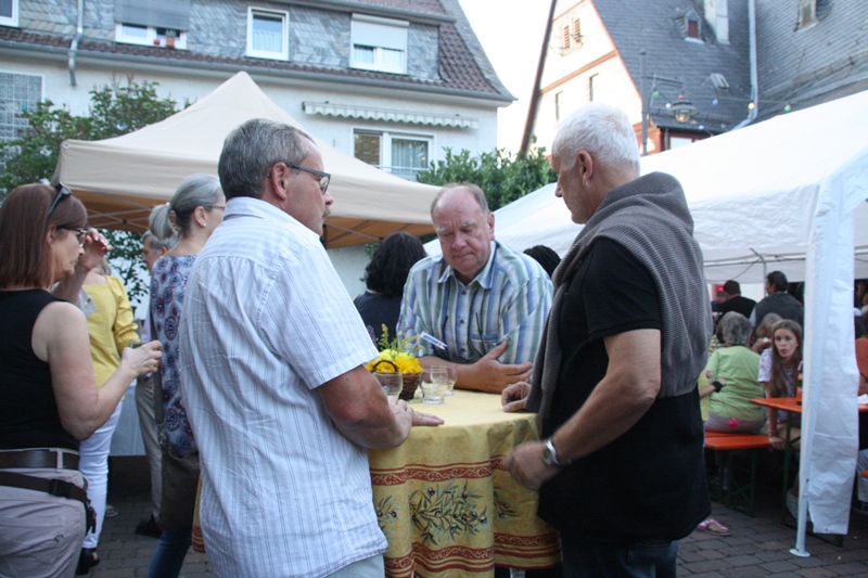 Wein gab es beim HVV noch genügend, aber der draußen stehende Flammkuchenofen musste wegen des Gewitters auch aus dem Betrieb genommen werden. Freitag und Sonnabend wurde bis spät in die Nacht gefeiert. In der alten Scheune ging es gemütlich zu, dort wird immer ohne laute Musik, erzählt, gegessen und getrunken. Ein Kontrastprogramm zur Straßenkerb, was von den vielen Stammgästen sehr gerne angenommen wird.