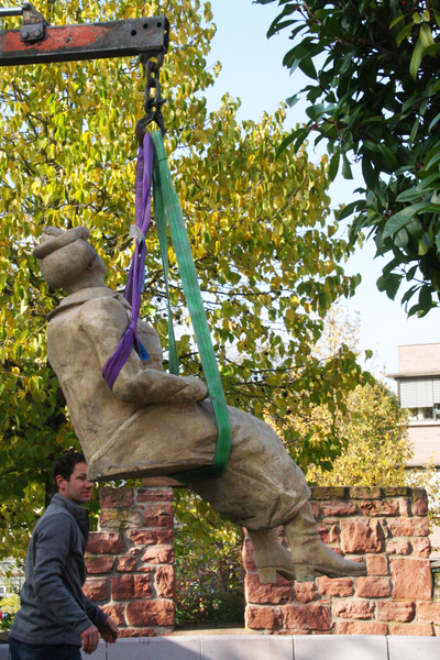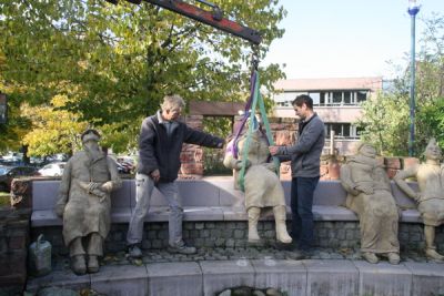 In einer kleinen Feierstunde wurde am Dienstag, den 05. November, die Figur zurück auf die Bank gesetzt. Nun schauen sie alle acht wieder in den Himmel und hoffen, dass nie mehr eine von ihnen zerstört wird.