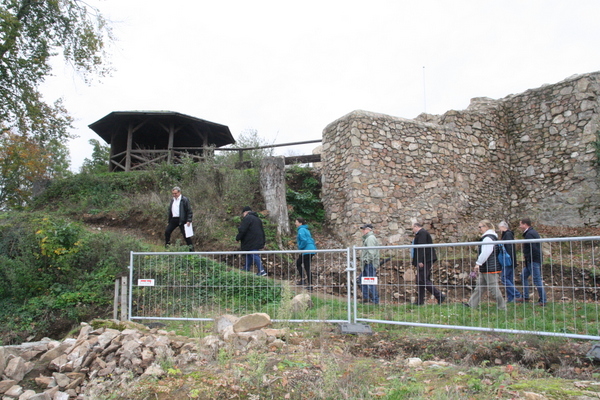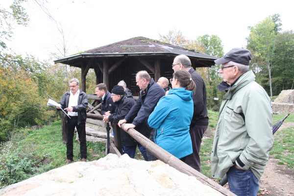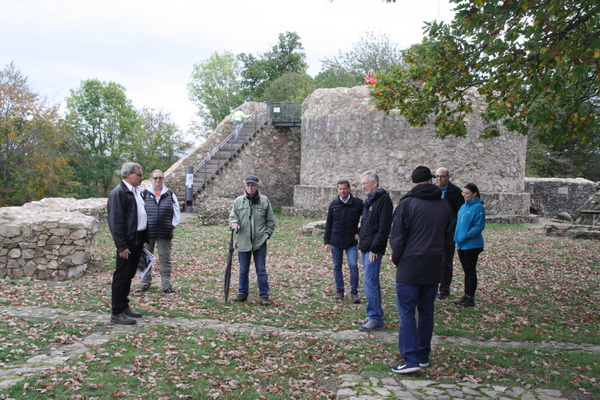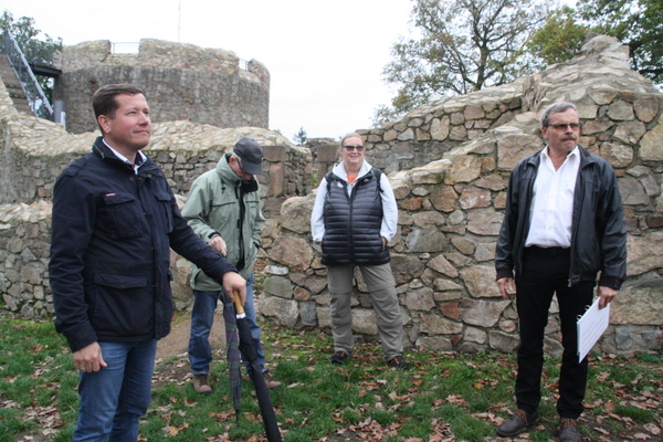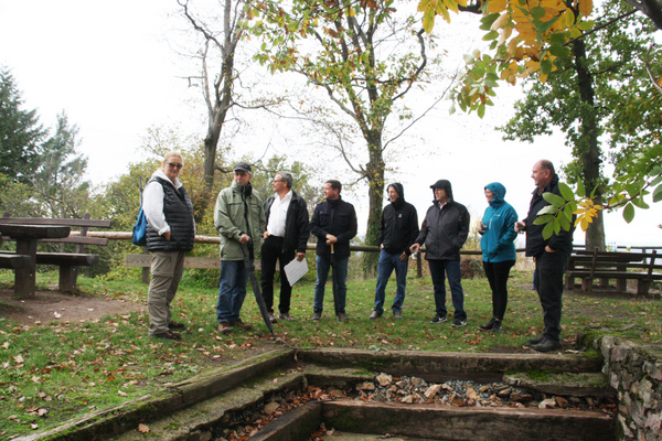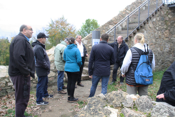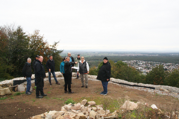Der Gemeindevorstand der Gemeinde Seeheim-Jugenheim macht sich am 21.10.2019 im Rahmen einer Ortsbegehung ein Bild über den Zustand der Burgruine auf dem Tannenberg.