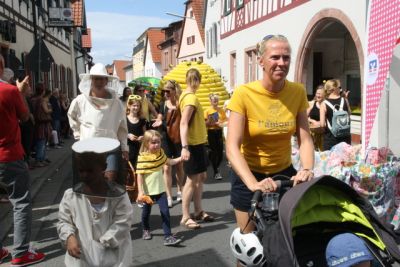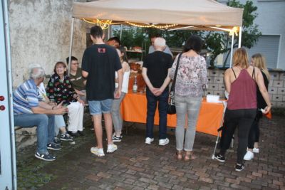 Das Wetter war durchwachsen, aber die Stimmung in und an der Scheune am historischen Rathaus in Seeheim war hervorragend. Am Flammkuchenofen gab es keine Pause und der Wein in der Scheune floss reichlich.